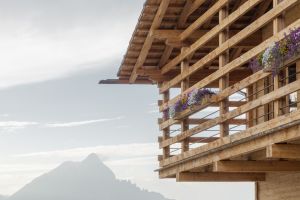 La terrazza, come anche l'intera struttura del rifugio, profuma di larice e si affaccia sulla vallata incorniciata dalle splendidi DOLOMITI, Patrimonio UNESCO.