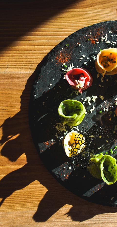 I ravioli al pino mugo sono l'espressione più autentica di questa filosofia: la pasta fresca, rigorosamente fatta in casa, condita con l'essenza di pino mugo, ricavata dalle piante che crescono attorno al rifugio, profumano di bosco.